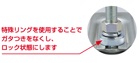※特殊リングを使用することでガタつきをなくし、ロック状態にします